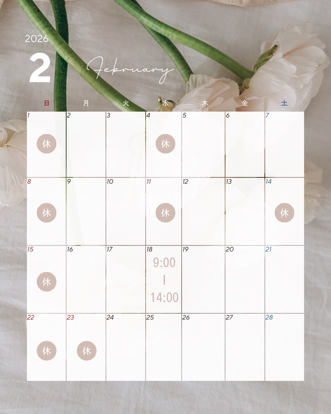 (土)9:00~14:00